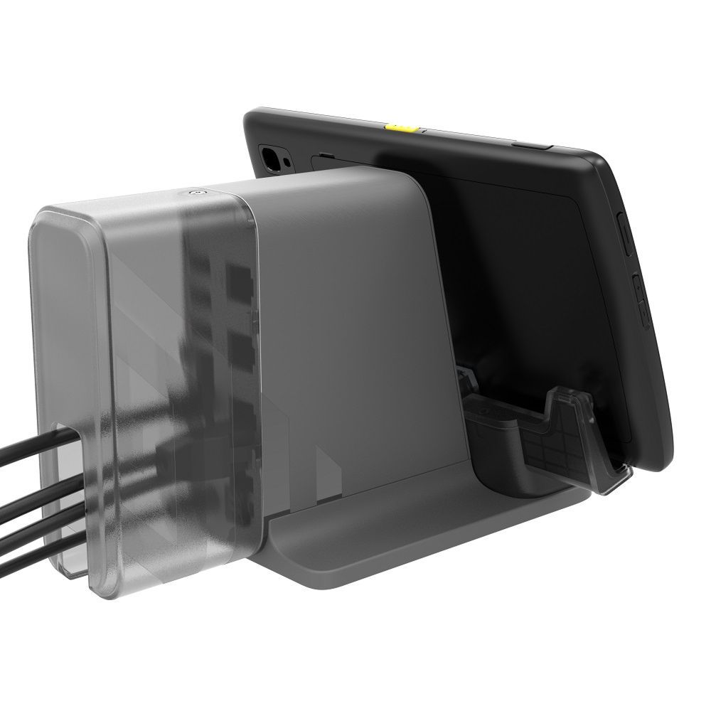-ET4X Connect Cradle (Workstation), consente di collegare un tablet (da 10 pollici o 8 pollici) a un monitor esterno e a vari dispositivi, tra cui porte HDMI, Ethernet, una presa per cuffie da 3,5 mm e USB-A (x4). Richiede un ET4X, un alimentatore PWR-BGA12V50W0WW, un cavo di alimentazione CBL-DC-388A2-01.